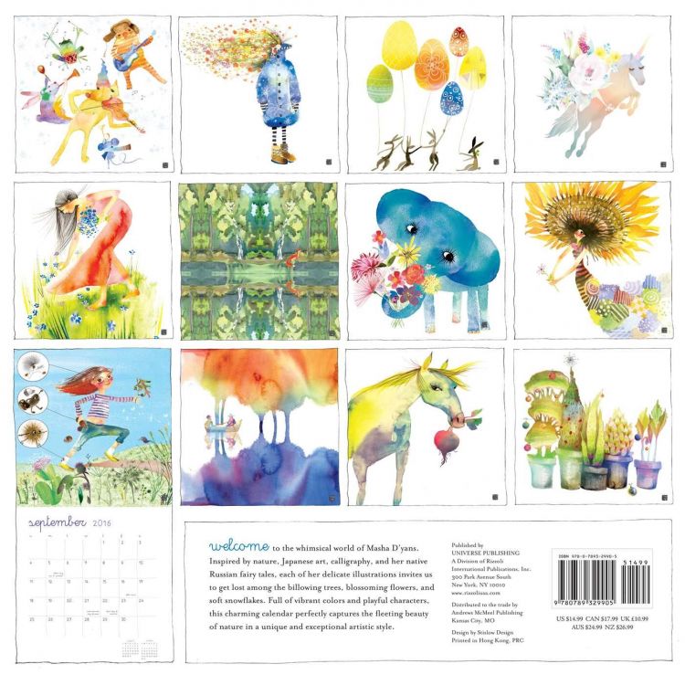 9. Сентябрь — начало осени и учебного года. Воспоминания о прошедшем лете найдем в красочном и добром календаре Masha D'yans 2016.