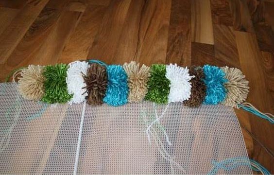 3. Сделайте уютный пушистый коврик из помпонов.